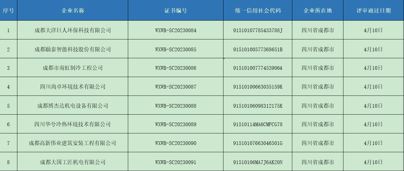 我會對第九批四川省制冷空調(diào)維修維保資格證書的申報材料組織了專家審查,現(xiàn)將符合專家審查意見的企業(yè)名單在四川省制冷學(xué)會門戶網(wǎng)站(http://www.xyfs168.net/)予以公示,以廣泛接受社會監(jiān)督。公示截止日期為2023年4月13日。