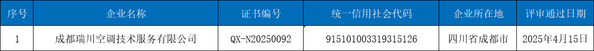 附件:第十七期四川省空調通風系統專業清洗資質證書信息匯總表