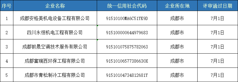 我會對第四批四川省制冷空調維修維保資格證書的申報材料組織了專家審查,現將符合專家審查意見的企業名單在四川省制冷學會門戶網站(http://www.xyfs168.net/)予以公示,以廣泛接受社會監督。公示截止日期為2021年7月5日。