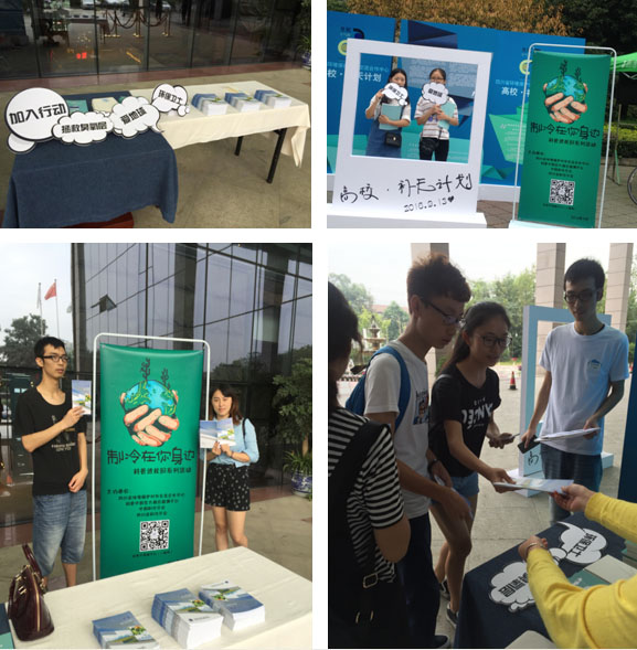 活動當(dāng)日,我們在四所高校內(nèi)設(shè)立了臭氧層知識展板和趣味留影墻。臭氧層知識展板大量人群駐足瀏覽,學(xué)生參加趣味留影活動的積極性很高,紛紛合影并發(fā)微博,朋友圈等進(jìn)行宣傳。